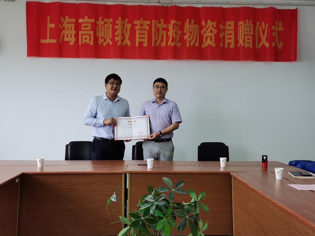 最后,王立峰副处长代表学校为谢斌总经理颁发了捐赠证书。王立峰副处长代表学校对高顿教育的爱心支援,对学校疫情防控工作的大力支持表示衷心感谢。他表示,高顿教育的爱心之举充分体现了企业的社会责任感和对教育事业的深切关怀,希望高顿教育能够一如既往地支持学院工作,不断拓宽合作领域,加强双方在实习实践基地、创业就业等方面的校企合作!