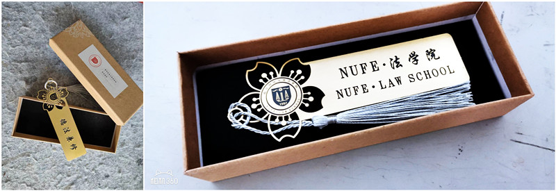 片片温情入行囊。伴你一路“签”行,法学院为每位毕业生准备了一份定制书签。书签采用金属材质,以花朵为形,院徽为蕊,正面刻着“NUFE•法学院”,背面刻着“德法兼修”,书签虽小,情义甚浓,承载着学院对各位毕业生满满的祝福与期许,期望毕业生们在奔向理想的途中,依旧能够严于律己,坚定自己的理想信念,在不断提高自己的专业能力的同时注重道德修养,做一个有家国情怀的人。