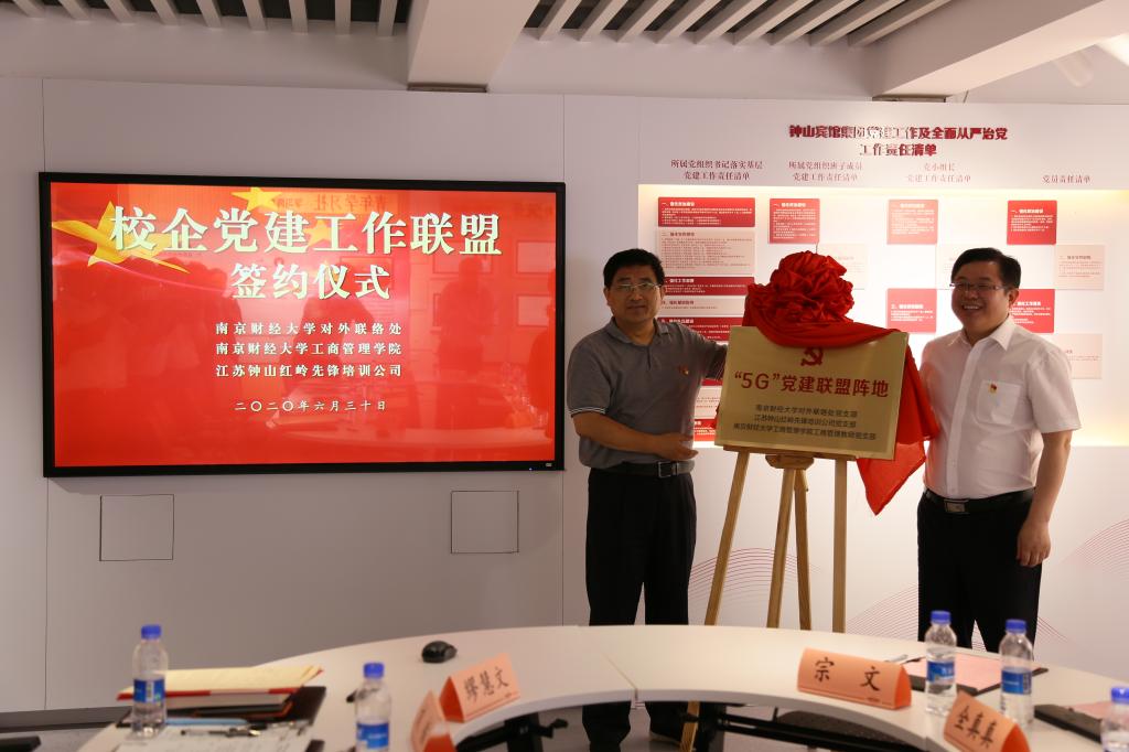 校党委常委、副校长乔均与钟山宾馆集团党委书记、董事长朱银生共同揭牌