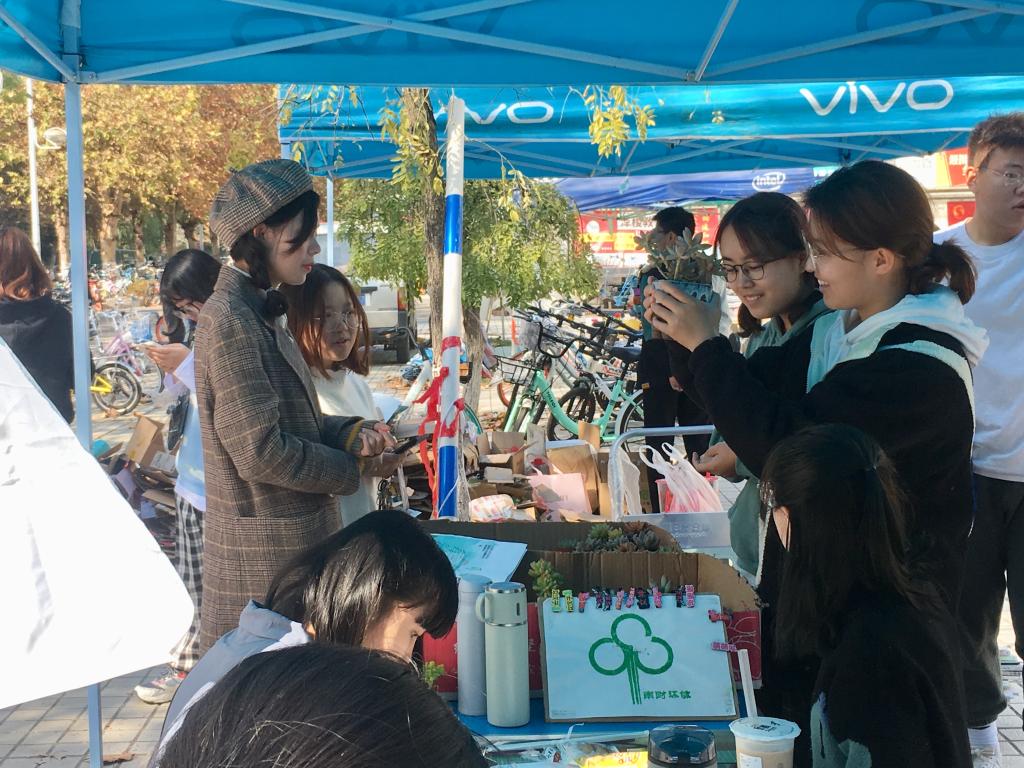 11月14日,由金年会环境保护协会主办的垃圾分类活动在仙林校区北苑食堂前广场火热进行。现场人来人往,热闹非凡。