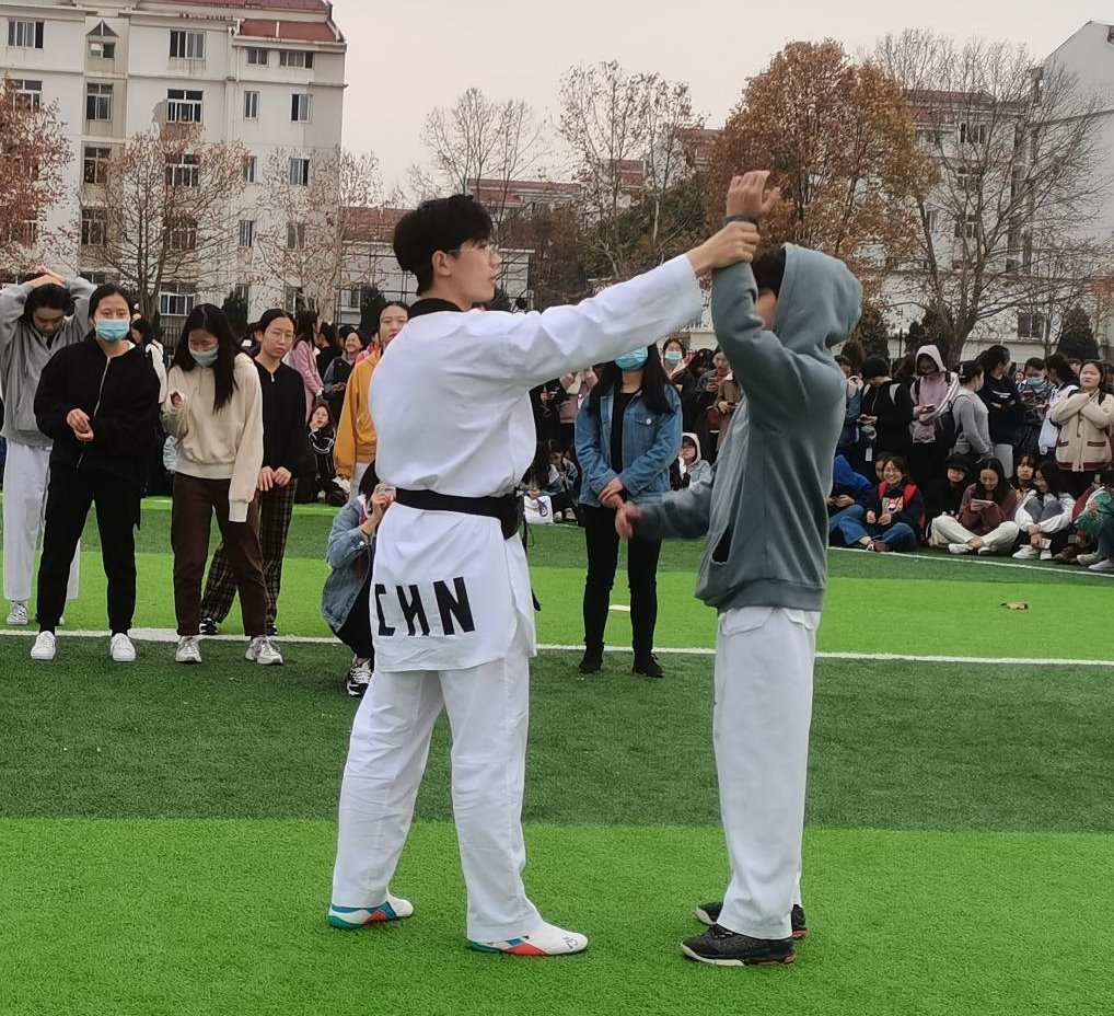 11月20日下午,宿舍管理委员会在仙林校区中苑操场开展女子防狼演习活动。本次活动邀请了金年会极真空手道协会和跆拳道协会的学生现场讲解,传授自我保护的小技巧。