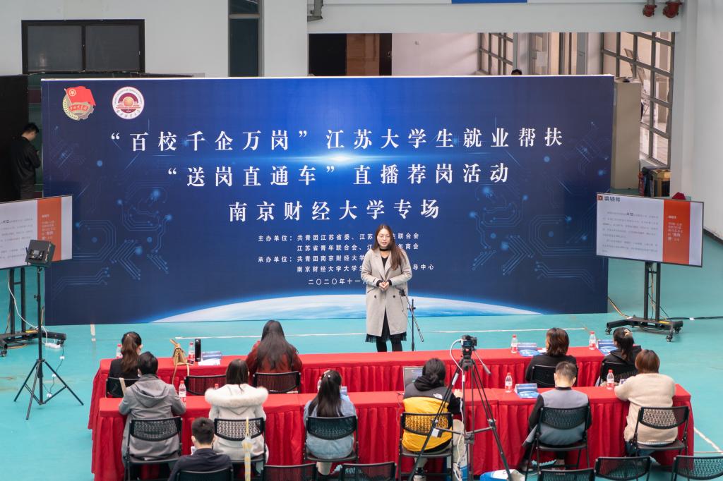 招聘会现场,校团委承办了“百校千企万岗”江苏大学生就业帮扶“送岗直通车”直播荐岗活动金年会jinnianhuicom专场,现场10余家用人单位通过线上直播、线下面试相结合的方式,为全省高校毕业生提供线上就业岗位推荐、就业观引导等就业服务,助力毕业生实现更高质量就业。值得一提的是,此次直播活动在线观看人数超1200人次,反响热烈。