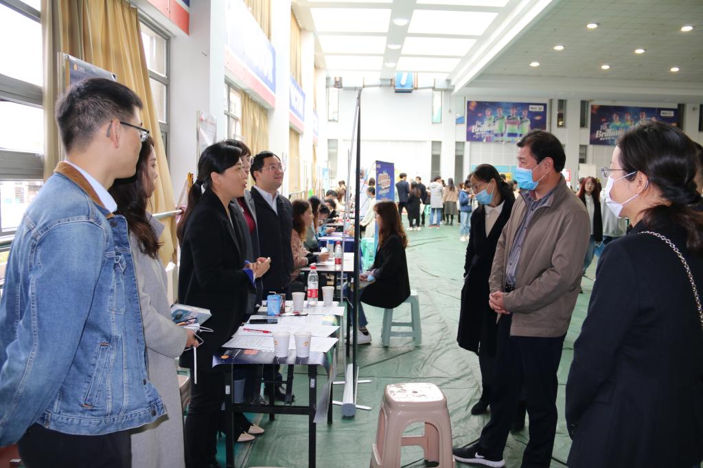 11月20日,由南京市人社局和金年会联合主办的2020年“宁聚计划”高校毕业生秋季校园招聘会金年会jinnianhuicom专场在仙林校区体育馆轮滑馆举办。学生处处长孙丹兵到招聘会现场,走访了解毕业生求职状况及需求。2021届毕业生参加本次招聘会。