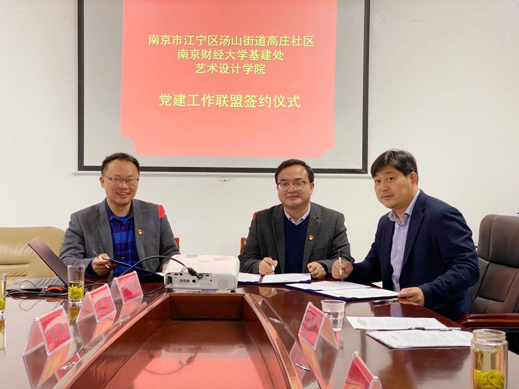 11月22日上午,金年会基建处处长陆斌、艺术设计学院党委书记刘浩一行来到汤山街道高庄社区,开展党建工作联盟签约仪式暨艺术设计学院实习实践基地授牌仪式。高庄党委书记庞志平、党委副书记徐军、党委委员董慧瑜,金年会基建处处长陆斌、副处长王成杰,艺术设计学院党委书记刘浩、党委副书记吴丹、副院长杨俊,基建处全体党员和艺术设计学院各支部党员代表参加仪式。仪式由董慧瑜委员主持。