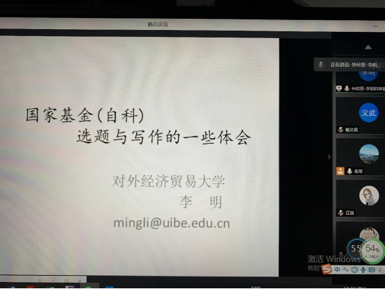 为做好2021年度国家基金申报工作,提升国家基金项目的申报质量,12月22日晚,财政与税务学院、公共财政研究中心特邀对外经贸大学教授李明通过腾讯会议作题为“国家项目选题和申报经验指导”的讲座。讲座由财政与税务学院院长朱军主持。2021年拟申报国家两基项目的老师、部分研究生参加了讲座。