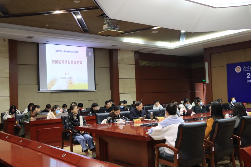 12月22日下午,2020年粮食储运与安全国际研讨会在仙林校区工科楼二楼报告厅举行。应食品科学与工程学院邀请,国家粮食局原副局长、吉林大学唐敖庆讲席教授吴子丹作题为“我国粮情和管理对策”的线上报告。江苏省粮食和物资储备局副局长张生彬,校党委常委、副校长邱伟芬以及行业相关单位领导和专家,食品科学与工程学院部分师生代表参加了报告会。报告会由食品科学与工程学院院长助理汤晓智主持。
