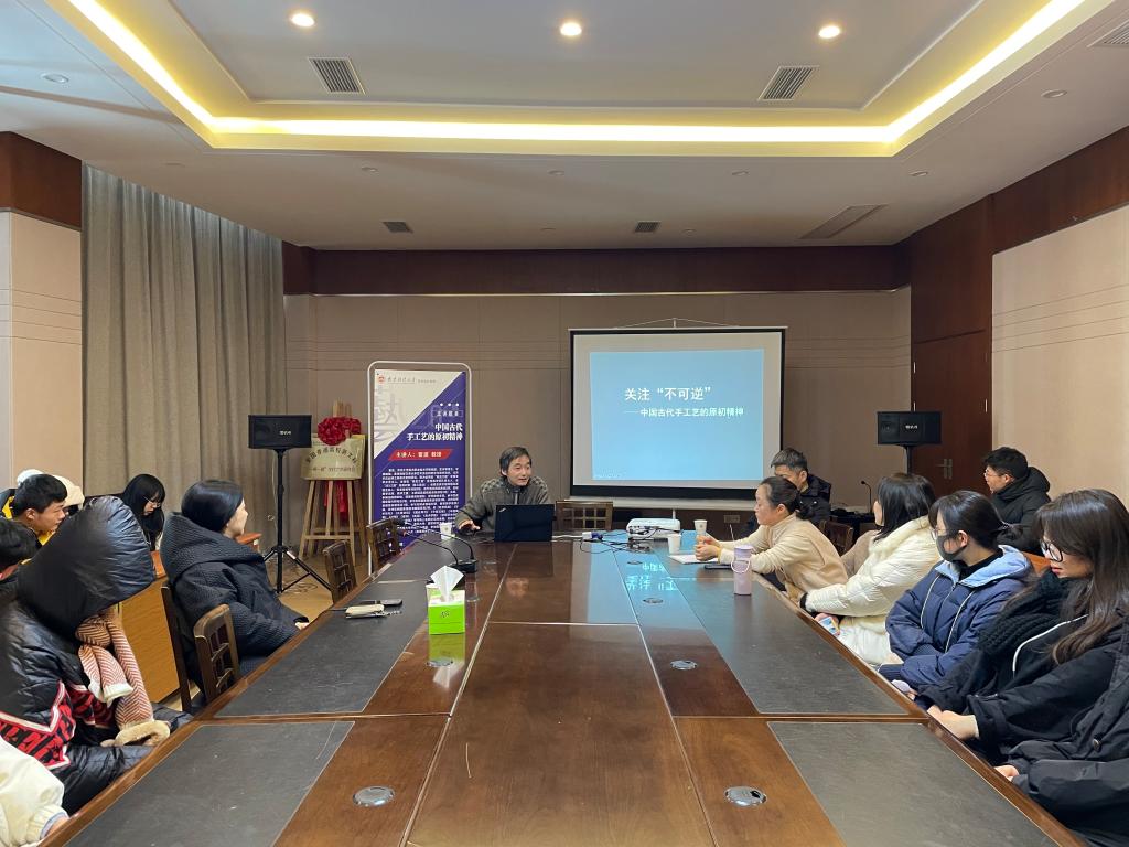 12月30日下午,应艺术设计学院邀请,苏州工艺美术职业技术学院教授、艺术学博士、学报编辑董波在仙林校区艺术学科楼美术馆会议室作了题为“中国古代手工艺的原初精神”的学术讲座。艺术设计学院部分教师和学生代表参加此次讲座。讲座由艺术设计学院院长丁蕾主持。