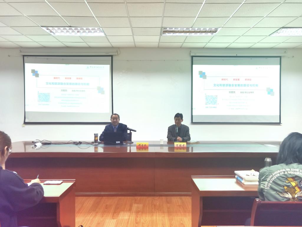 4月13日晚,应工商管理学院邀请,中金年会经政法大学旅游研究院院长邓爱民教授在仙林校区德济楼408会议室作了题为“文化和旅游融合发展的路径与机制”的学术报告。工商管理学院旅游管理专业部分师生聆听了报告会。报告会由工商管理学院院长万绪才主持。