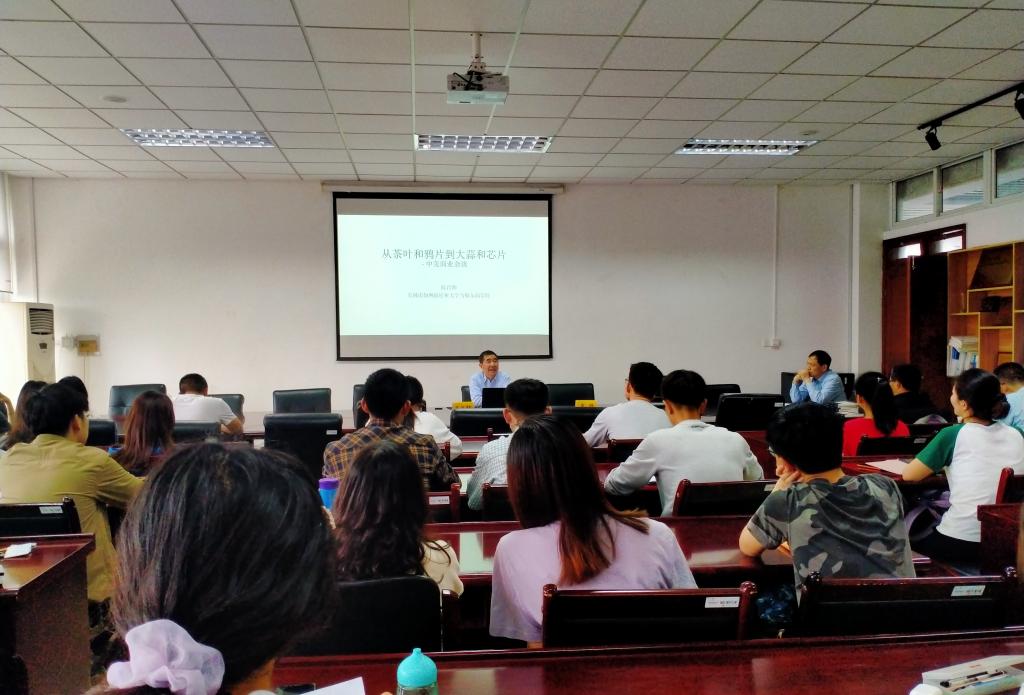5月13日下午,美国南加利福尼亚大学马歇尔商学院陈百助教授受邀在金年会仙林校区德经楼308会议室作了题为“从茶叶和鸦片到大蒜和芯片——中美商业杂谈”的学术讲座。国际经贸学院教师代表及研究生参加讲座。讲座由国际经贸学院院长宣烨主持。