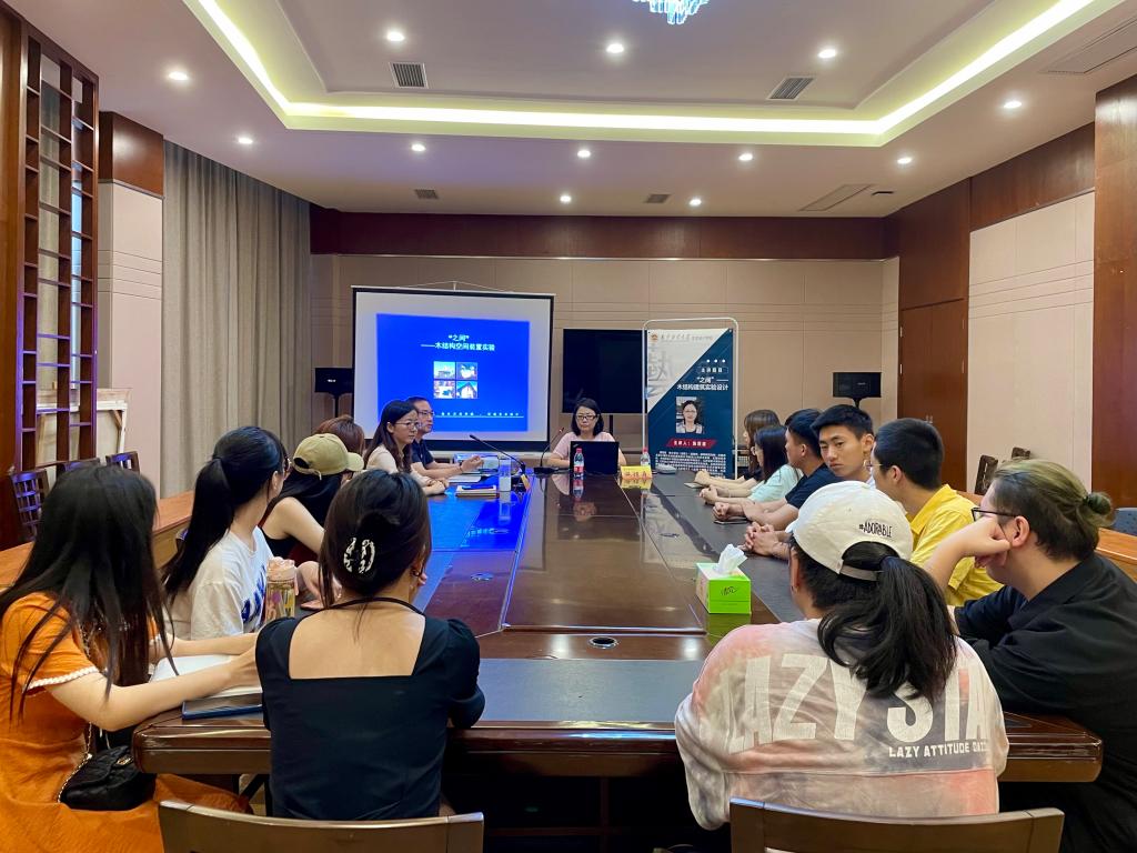 6月16日下午,南京艺术学院副教授、硕士生导师施煜庭作了主题为“‘之间’——木结构建筑实验设计”的讲座。施煜庭副教授从木结构建筑的定义、优缺点等方面详细介绍了木结构建筑的概念。她结合芝加哥的伯纳姆亭、巴黎的香奈儿流动艺术馆、荷兰的霍夫多普等建筑案例,向同学们介绍了在科技发展下的今天,如何在建筑材料与建筑形式的选择中体现出材料技术与革新性。施煜庭副教授表示,当前的木结构建筑既能够充分利用环境资源,同时也能通过建筑展现对于人和环境的关怀,有助于引起人们对保护生态环境的思考。