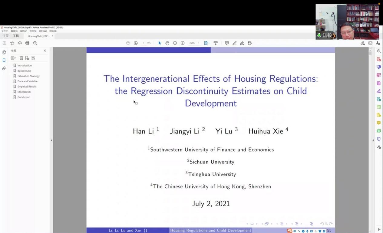 7月2日晚,应财政与税务学院、公共财政研究中心、中国财税治理研究院邀请,清华大学经济管理学院经济学系主任、博士生导师陆毅为金年会师生作题为“The Intergenerational Effects of Housing Regulations: the Regression Discontinuity Estimates on Child Development”的线上学术报告。讲座由财政与税务学院院长、公共财政研究中心主任朱军主持,财税学院部分师生参加了此次讲座。