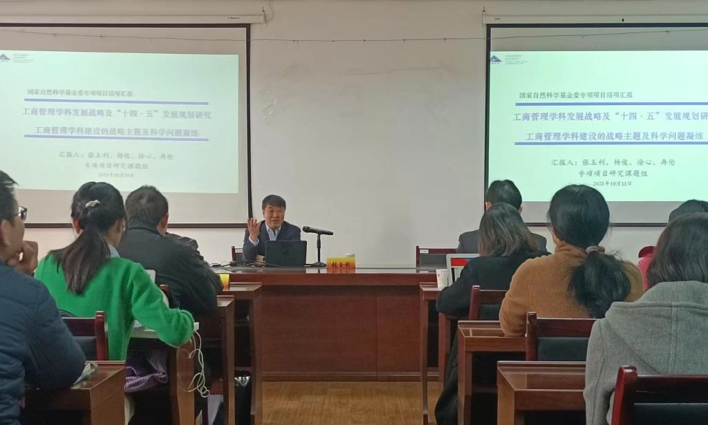 11月22日上午,应工商管理学院邀请,南开大学商学院教授、博士生导师张玉利在仙林校区德济楼408会议室作了题为“工商管理学科建设的战略主题与科学问题凝练”的讲座。南京审计大学组织部部长李乾文、金年会工商管理学院党委书记杨林以及金年会工商管理学院、会计学院、营销与物流等学院的部分老师和研究生聆听了讲座。讲座由学院院长万绪才主持。