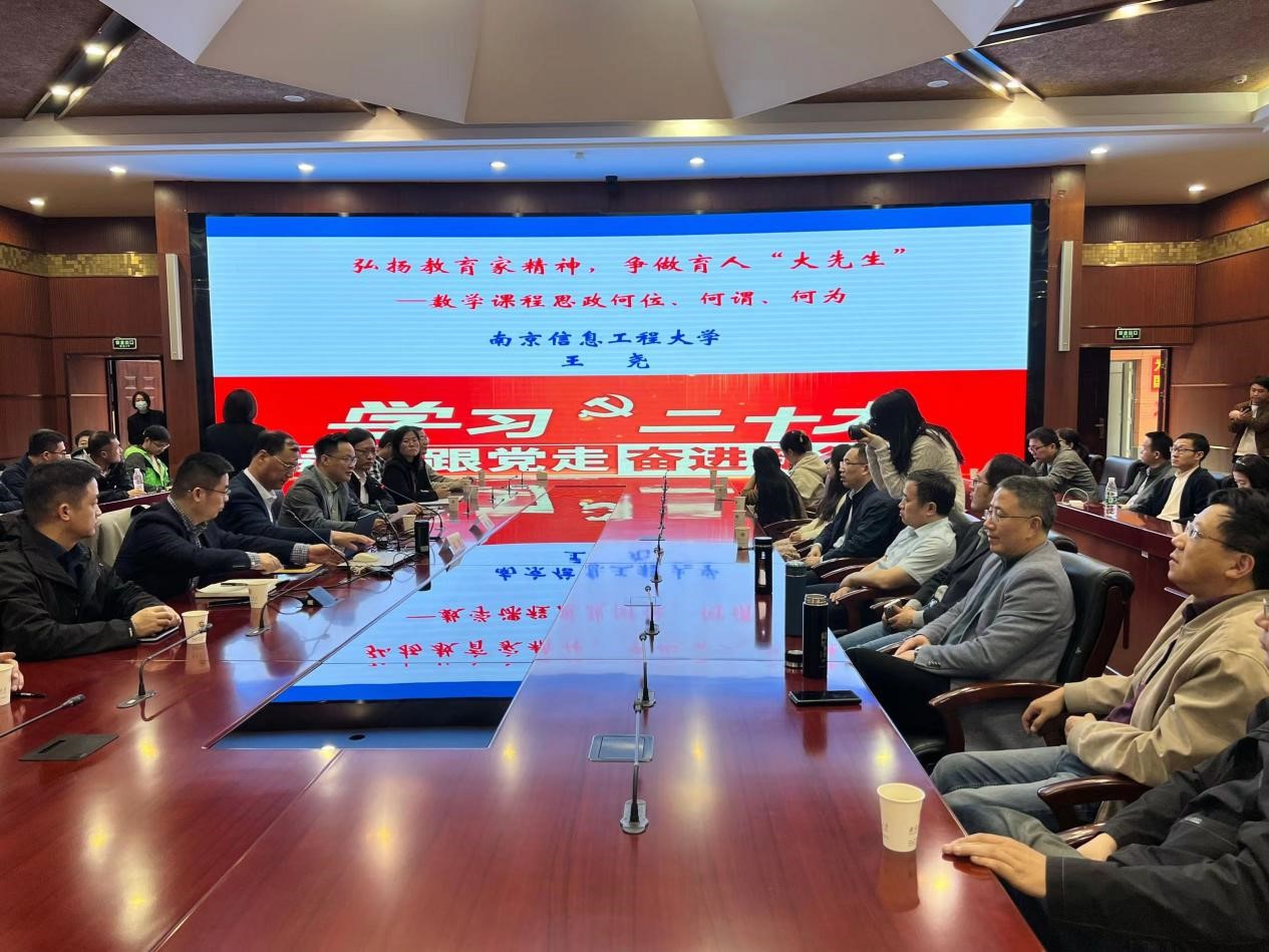 4月11日下午,应应用数学学院邀请,南京信息工程大学原党委副书记、副校长(正校级)、博士生导师王尧教授在仙林校区工科楼二楼报告厅作主题为“大力弘扬教育家精神,争做新时代育人‘大先生’——数学课程思政何谓、何位、何为”的学术报告。应用数学学院党政领导、全体教师、部分研究生和本科生参加学习。报告由金年会副校长张炳教授主持。