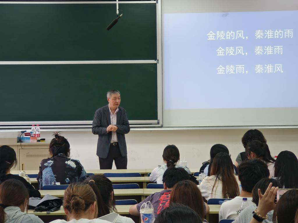 6月12日下午,应营销与物流管理学院邀请,上海师范大学金定海教授受邀以“金陵风·秦淮雨——从地缘的角度谈创意”为题作讲座。学院部分师生参加讲座。讲座由学院副院长姚杰主持。