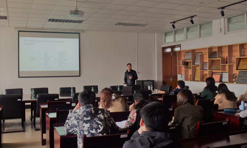 4月11日下午,应国际经贸学院邀请,对外经贸大学国际经济贸易学院胡钟中讲师在仙林校区德经楼308作了题为“the spillover effect of export control policy along the value Chain”(《稀土产业控制对下游企业的外溢效应》)的讲座,国际经贸学院部分老师和研究生聆听了讲座。