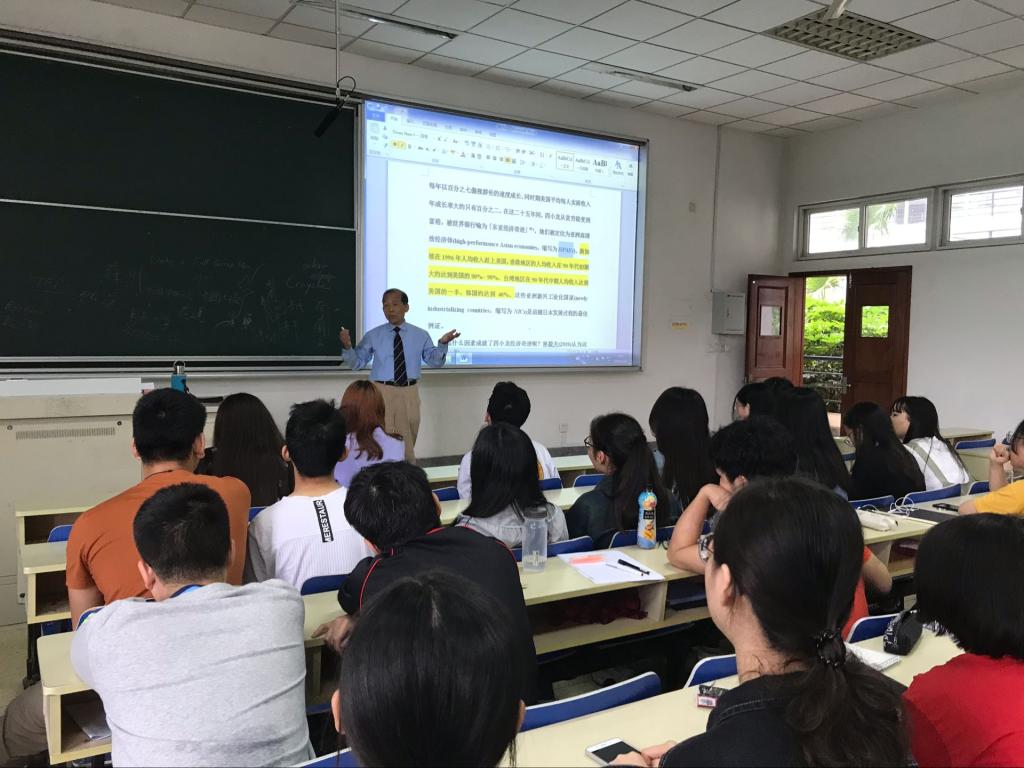 5月16日-24日,应国际经贸学院邀请,台湾东吴大学教授林炳文来金年会为国际经贸学院2017级国贸实验班学生开设了为期8天的《国际贸易个案》课程。