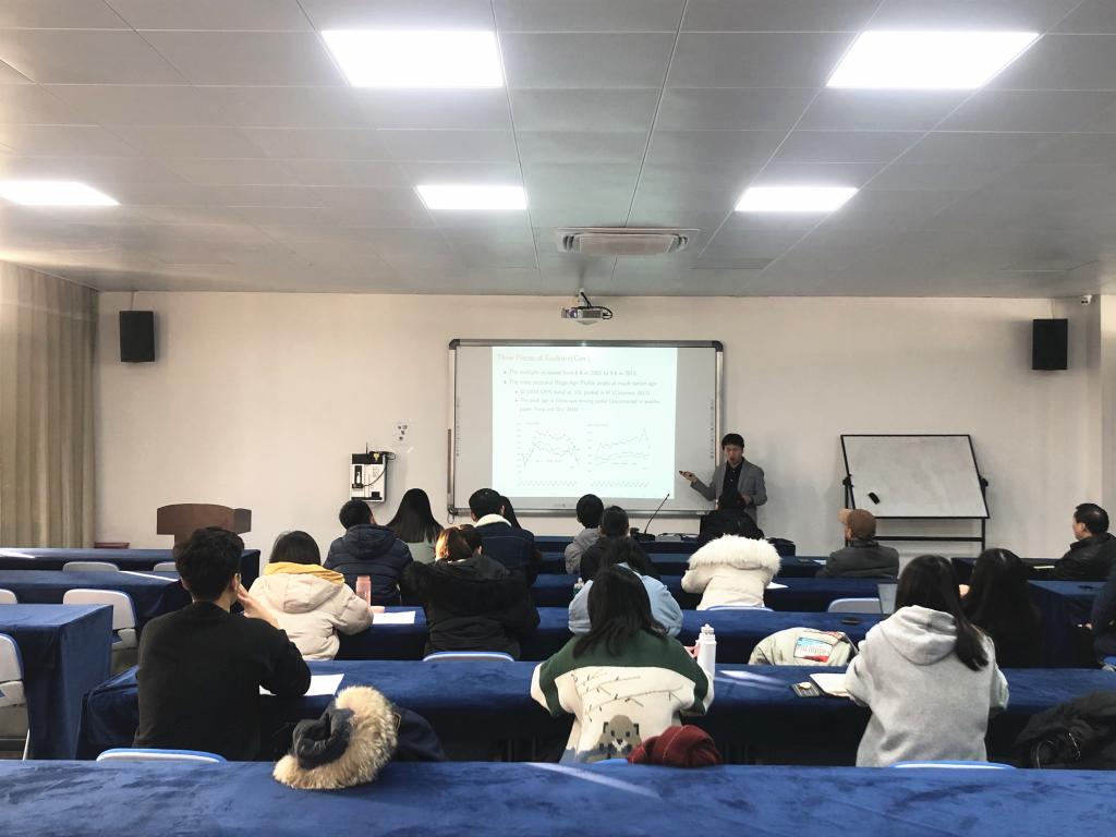 12月27日下午,应公共管理学院邀请,上海财经大学公共经济与管理学院博士生导师、副教授张熠在金年会仙林校区德济楼502实验室作了题为“Growing Pains in Chinese Social Security(中国社会保障体系中成长的烦恼)”的学术讲座。学院部分教师和研究生参加讲座,讲座由社会保障研究院院长曹信邦主持。