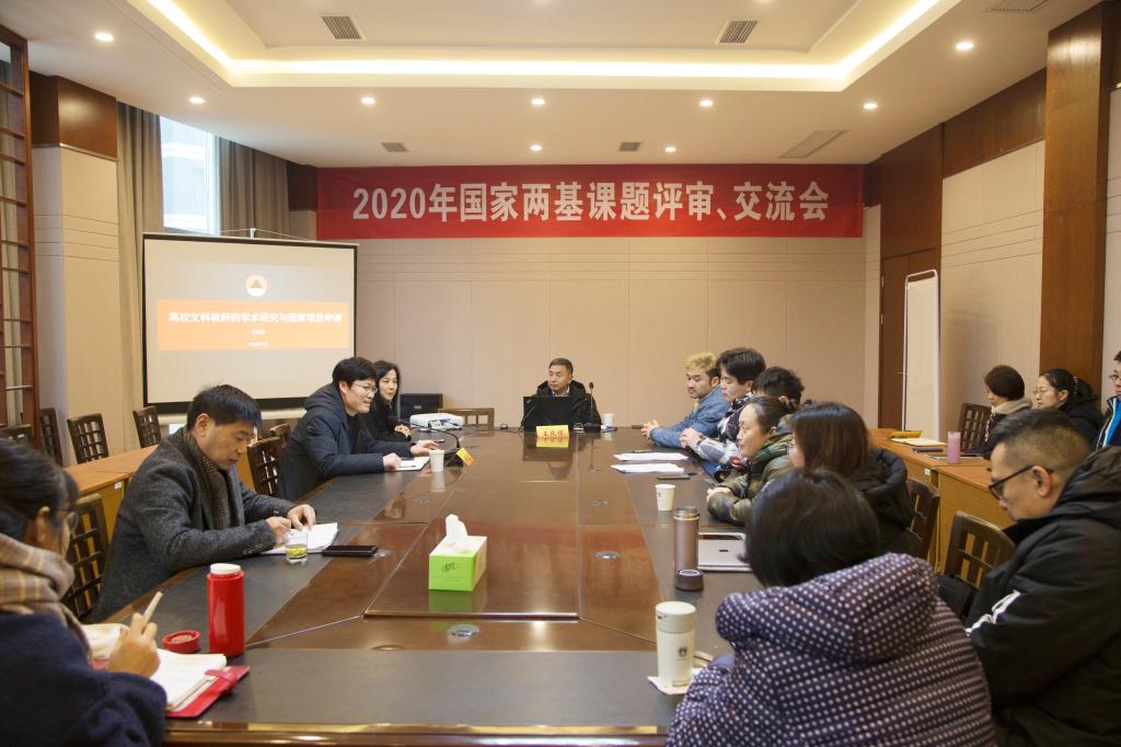 1月16日下午,艺术设计学院在仙林校区艺术学科楼美术馆会议室举办了2020年国家两基课题申报评审、交流会,邀请中国传媒大学艺术研究院教授、博士生导师、常务副院长、第七届国务院学位委员会艺术学理论学科评议组成员、教育部高等学校艺术学理论教学指导委员会副主任委员王廷信介绍国家两基课题申报情况。校科研处副处长杜修立、艺术设计学院党委书记郭承波以及全体老师参加评审交流会,会议由艺术设计学院院长丁蕾主持。