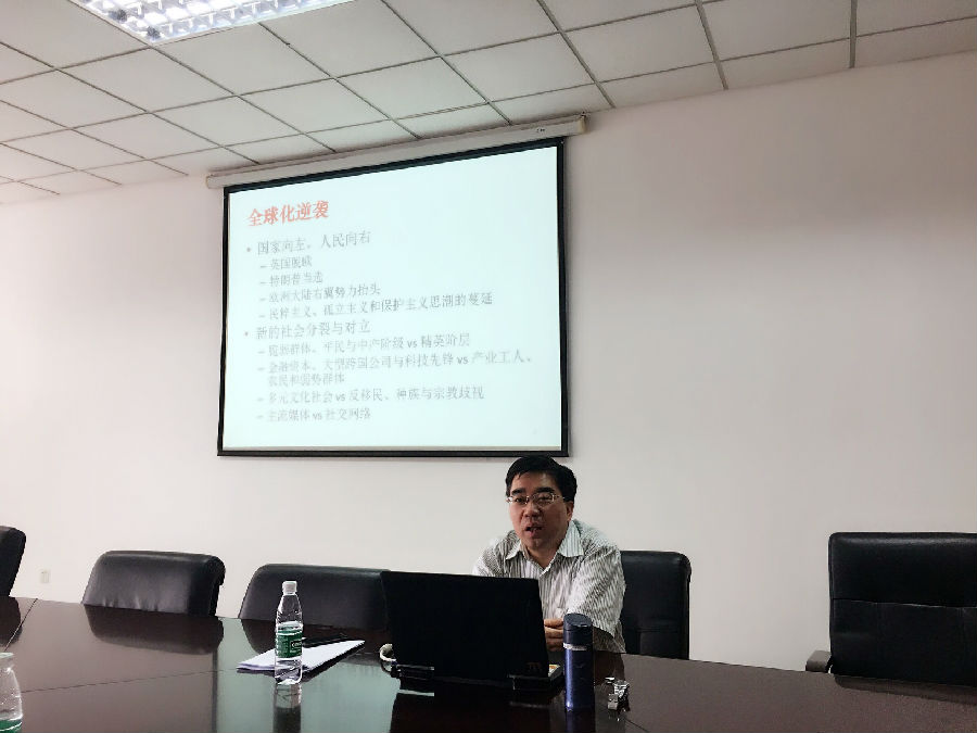 6月26日下午,南开大学研究生院副院长、《南开经济研究》副主编、《产业经济研究》编委会成员、博士生导师盛斌教授在金年会仙林校区经济学科楼308会议室作了题为“逆全球化背景下中国的角色与作用”的学术讲座。讲座由产业经济研究与学报编辑部主任李杏教授主持,编辑部、国贸学院部分教师和研究生聆听了讲座。