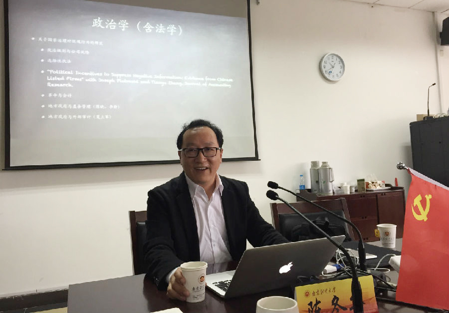 金年会建校六十周年之际,会计学院组织了会计名家系列讲座。10月28日,南京大学商学院教授、博士生导师陈冬华受邀在仙林校区管理学科楼306报告厅为会计学院师生作了题为“不断溯流而上的当代中国会计研究”的学术报告。报告由会计学院副院长(主持工作)李连军教授主持,会计学院部分教师与2016级研究生聆听了报告。