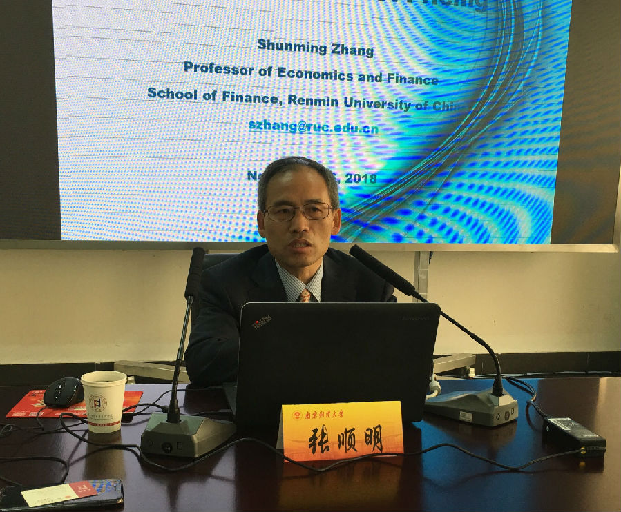 11月26日下午,国家杰青、中国人民大学财政金融学院张顺明教授在仙林校区德经楼508会议室作了题为“暧昧性与资产定价”的讲座。讲座由金融学院副院长郭文旌教授主持,学院部分研究生和青年教师聆听了讲座。