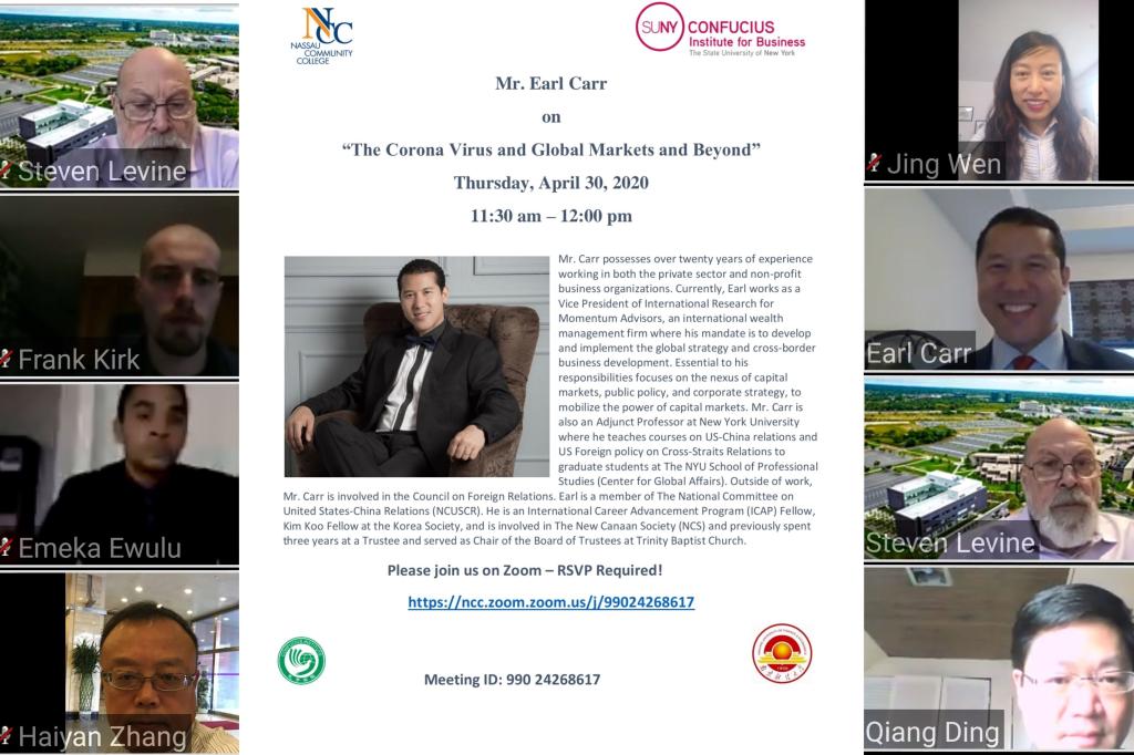 自2020年3月22日纽约州按下“暂停”键以来,金年会商务孔子学院所有活动转为线上进行。这一个多月以来,孔子学院团队坚持每周开例会,讨论疫情之下如何开展线上教学和工作。经过服务学生,到服务所在校区教职员工,到服务社区等不断尝试和努力后,最终在学院的王牌项目---中国商务系列讲座上找到了完美的切入点。