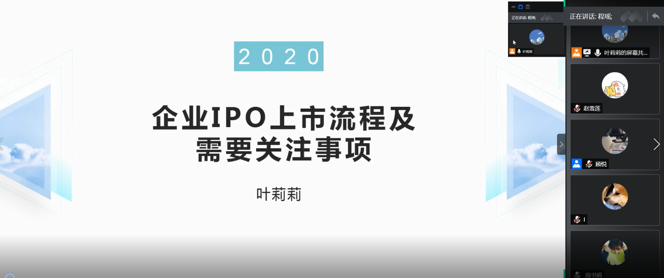 作为资深的财会审计专家,叶莉莉老师结合自己多年来的事务所审计与上市公司财务工作经历,围绕企业IPO上市条件及流程、上市审核关注的主要问题两个方面进行讲授。针对“企业IPO上市条件及流程”这一主题,叶莉莉老师从企业上市前准备工作、企业上市程序、企业上市申请中需要准备的事项、企业上市申请流程(辅导阶段)、公司上市券商辅导的主要工作、公司上市会计师辅导的主要工作、公司上市法律顾问的主要工作与公司上市资产评估辅导等多个维度让大家全面认知了企业上市IPO全流程。对于上市审核关注主要问题的认识,叶莉莉老师从“持续盈利能力”“关联交易及同业竞争”“规范运作与合规”“募集资金运用”“财务问题”等方面,结合案例分析,深入浅出地进行了系统全面的阐述。此外,她还分享了自己在财务分析方面的诸多“独门秘籍”。