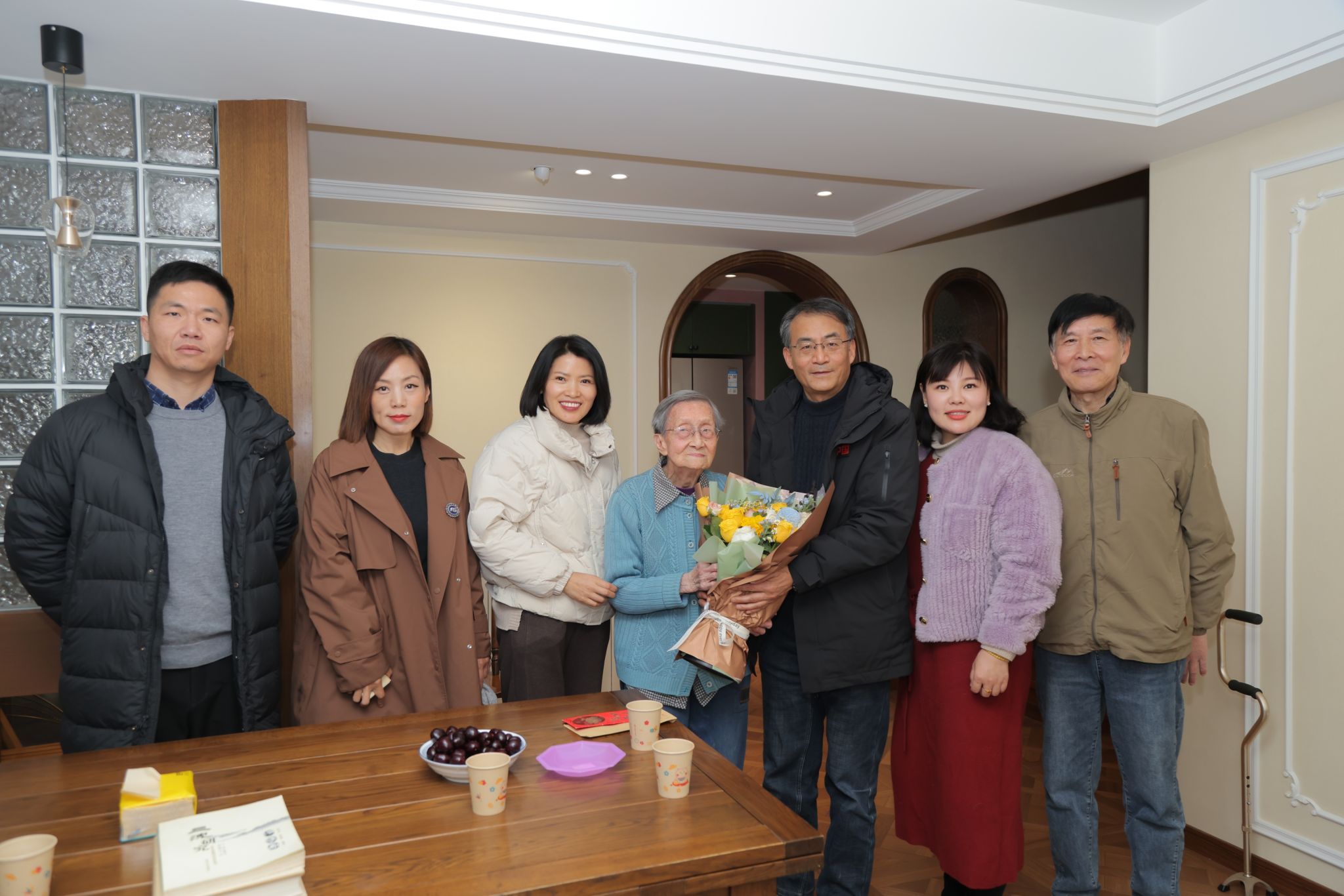 1月9日,金年会jinnianhuicom校党委副书记李群专程探望了百岁高龄的沈兑老师,感谢她与已故丈夫对学校发展作出的重要贡献。离退休工作处处长唐习华,党委统战部副部长王鑫,党委宣传部副部长龚莉红,校档案馆副馆长、校民建主委安艳杰陪同慰问。