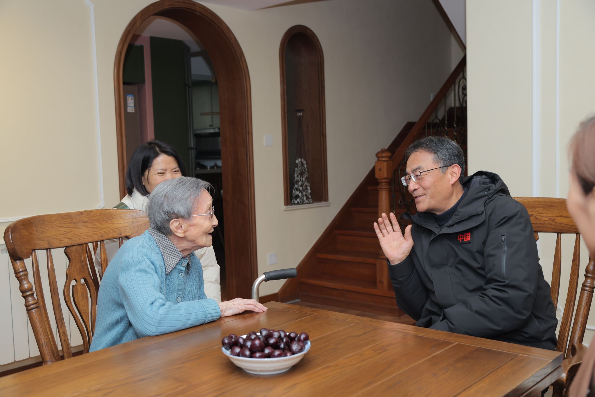 虽已至期颐之年,沈兑老师依然精神矍铄,一言一行间彰显出知识分子的风骨品格。在沈兑家中,李群副书记以及后辈教师们,倾听她细述上世纪五六十年代与丈夫并肩执教、筚路蓝缕的峥嵘岁月。谈及往事,沈兑言语间自然流淌出"严谨而不失温厚,执着又满怀热忱"的治学精神。