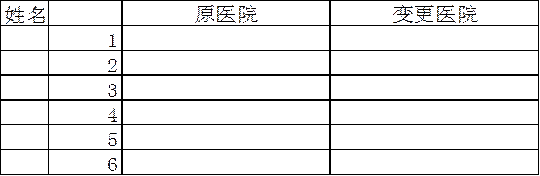 2、如有需要变更定点医院(定点医院具体名称在后勤保障处、校医院网页查询)的,请填写下表(请在表上留下联系号码),并于12月18日前交到校医院220房间